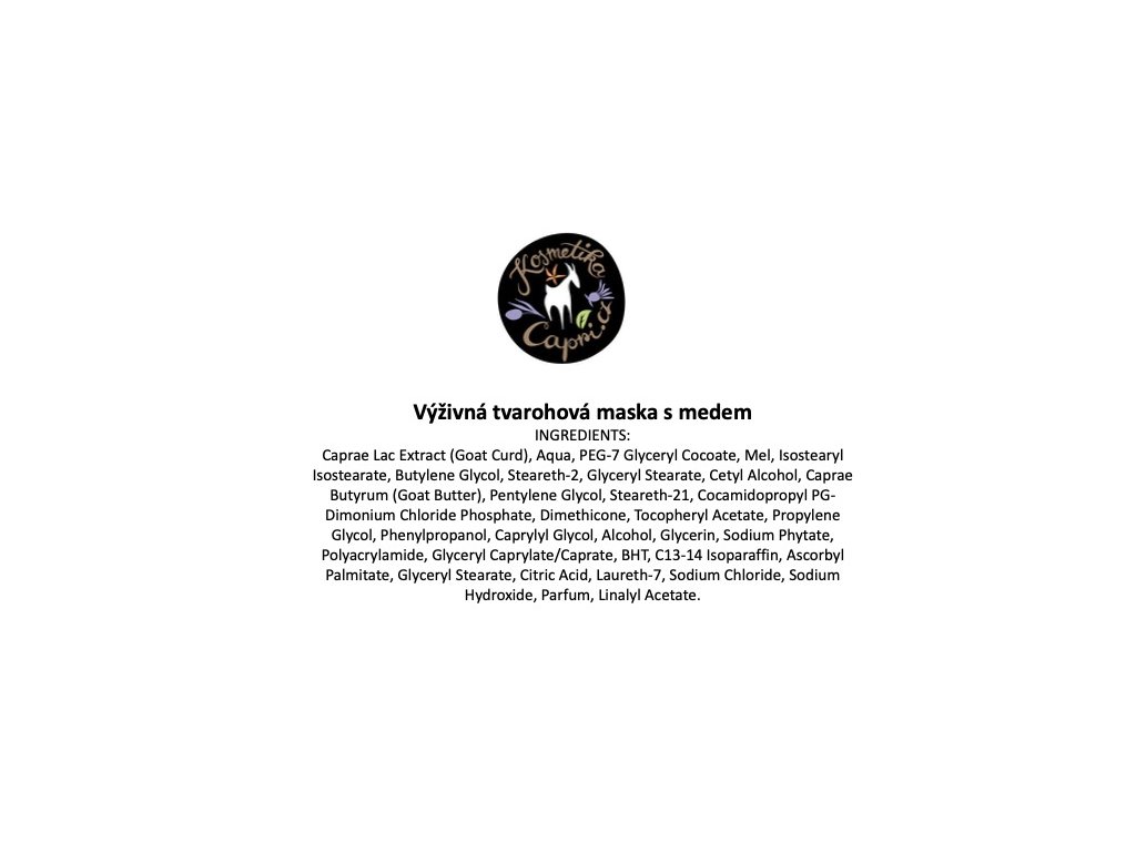 - přírodní tvaroh z kozího mléka - zvyšuje hydratační a regenerační účinek masky