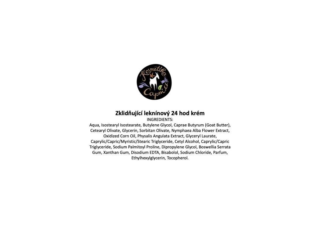 - extrakt z květu Leknínu bílého - rozjasňuje pleť, redukuje pigmentaci vyvolanou stresem ( působením záření, znečištěného prostředí a mechanickým podrážděním), chrání DNA před poškozením, zmírňuje pocit štípání u citlivé pokožky
